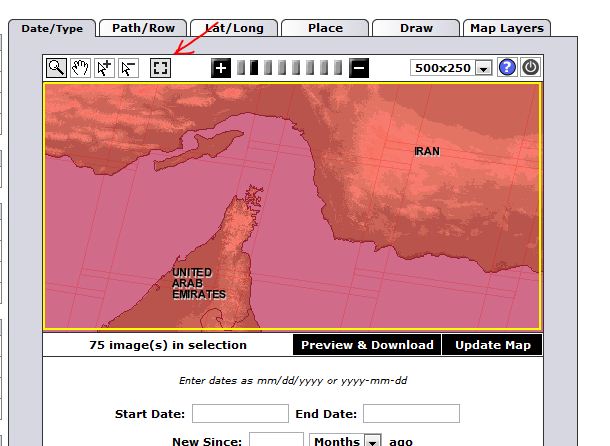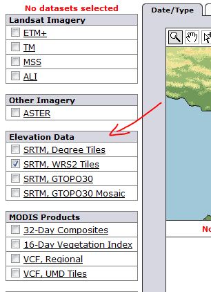 از طریق ابزارهای بزرگ نمایی منطقه مورد نظر خود را از روی نقشه پیدا کنید سپس از جعبه elevation data نوع داده درخواستی خود را مشخص نمایید